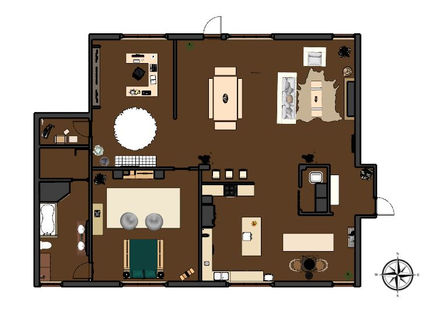The floor plan of the existing studio was provided, and windows & structural elements had to remain.